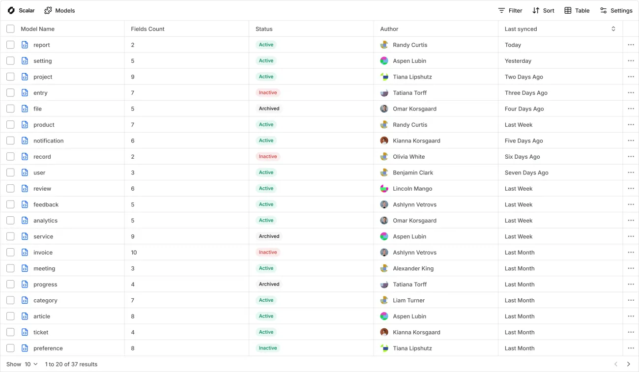 Define models in code. Sync them seamlessly to Scalar's UI.